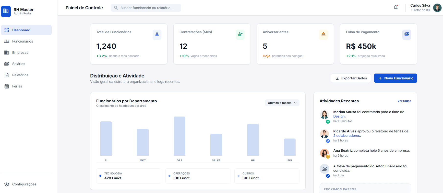 Centralização completa da gestão de Recursos Humanos