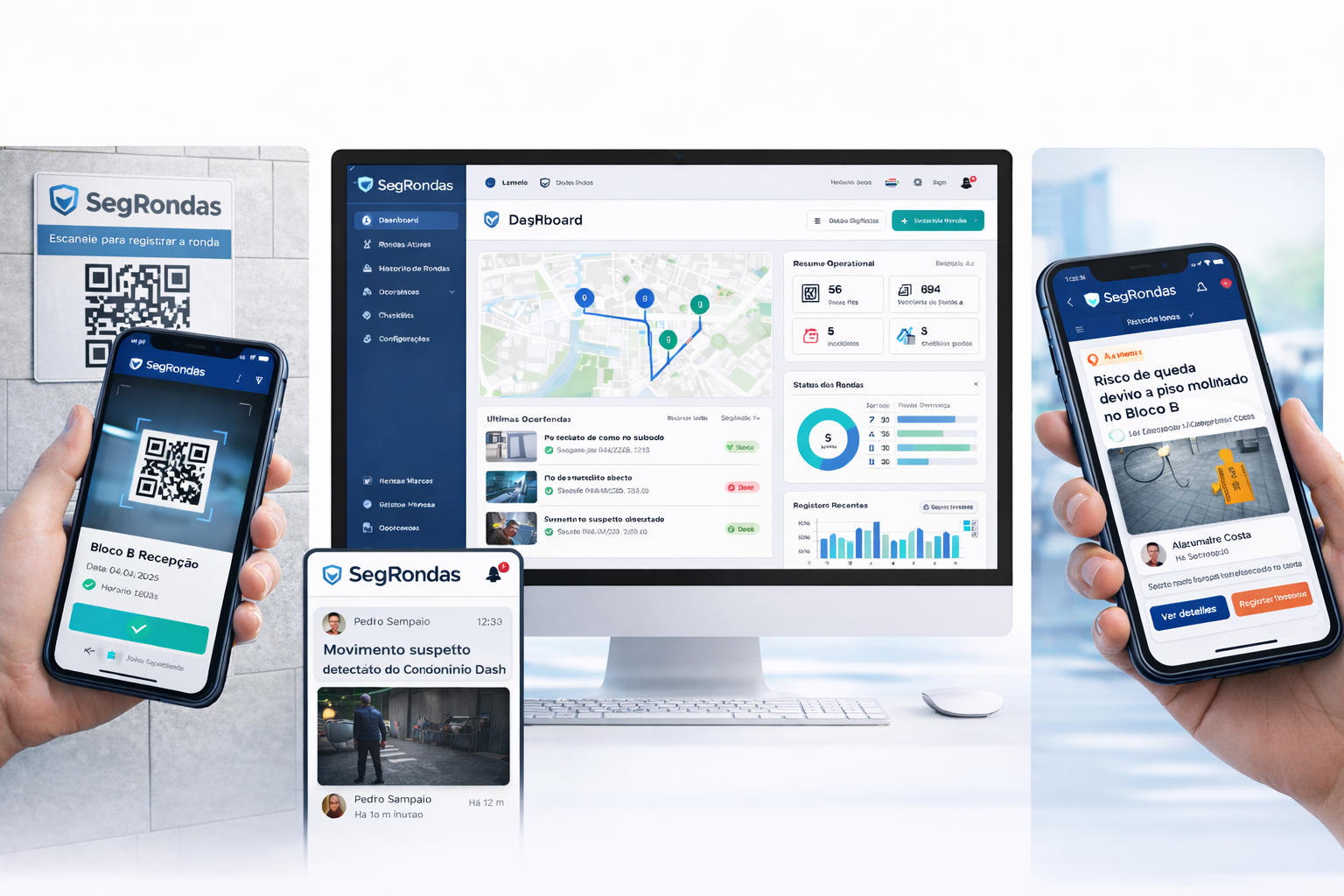 Desenvolvemos o SegRondas, um sistema web e mobile para monitoramento, controle e auditoria de rondas de vigilância, utilizando leitura de QR Codes instalados em pontos estratégicos.