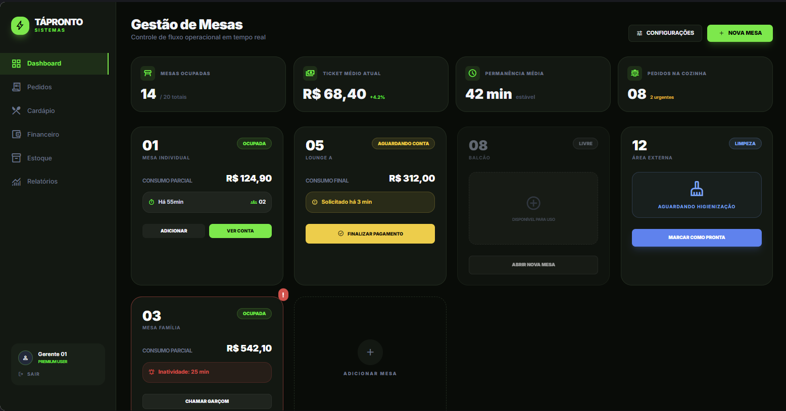 Plataforma completa de gestão para bares, restaurantes, lanchonetes e operações de food service, desenvolvida para centralizar e automatizar todo o fluxo operacional do estabelecimento em tempo real.